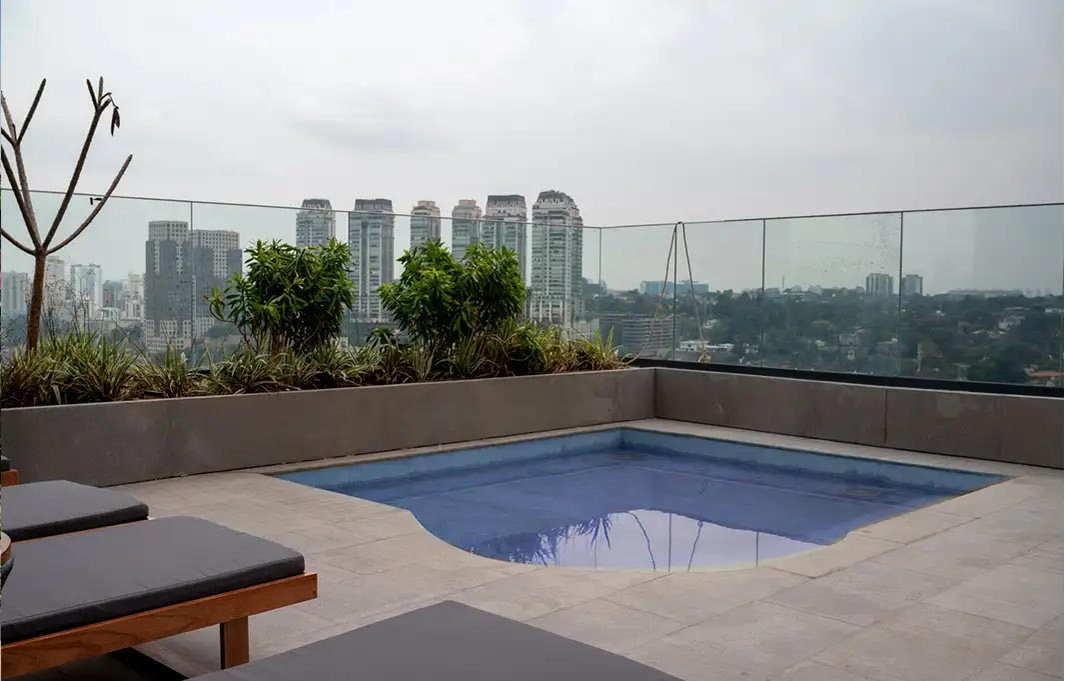 Conheça o exclusivo living 180º com 2 varandas opostas com jardineiras, oferecendo aos moradores o conforto da iluminação natural, ventilação cruzada e vista para o melhor da cidade.