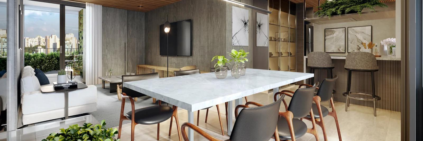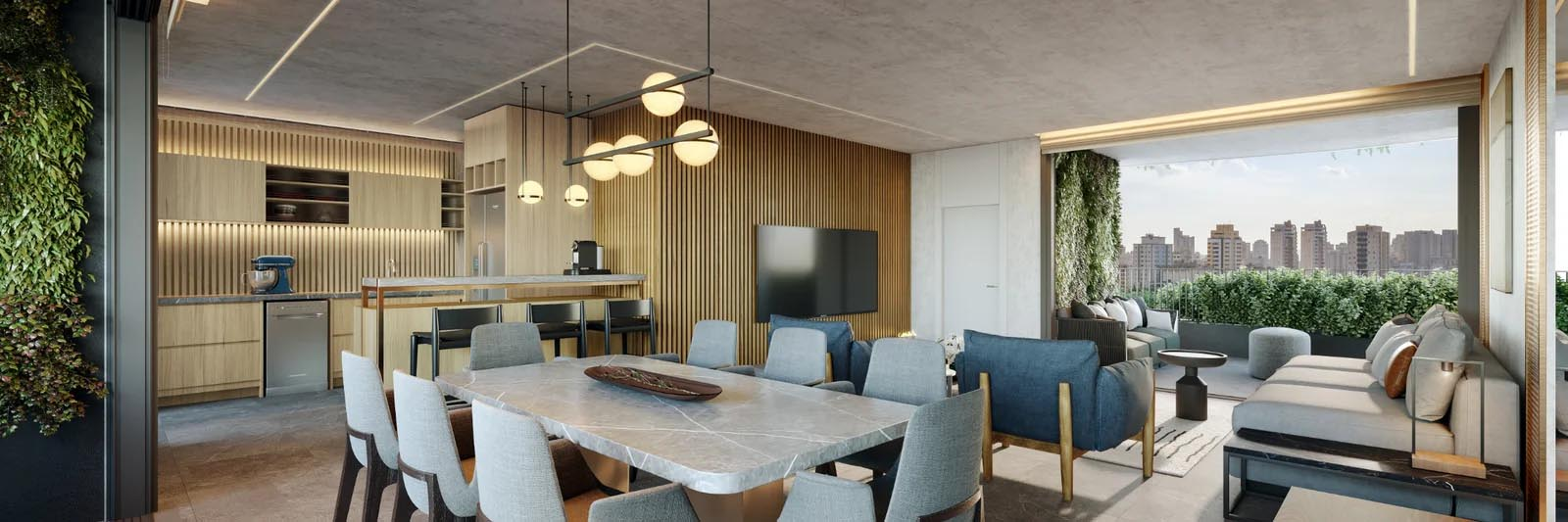 Conheça o exclusivo living 180º com 2 varandas opostas com jardineiras, oferecendo aos moradores o conforto da iluminação natural, ventilação cruzada e vista para o melhor da cidade.
